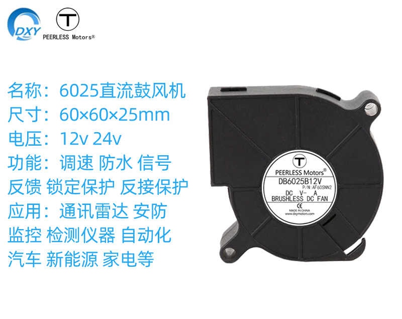名称:6025直流鼓风机 尺寸:60*60*25mm